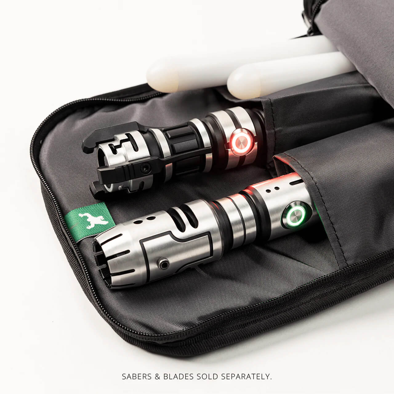 Bag in the colors of the Duchess armor of a warrior people respected and feared throughout the galaxy. It's specially designed to carry your personalized sabers safely, conveniently and, above all, in style. It can easily be carried by hand with the hilt side strap, or over the shoulder with the adjustable shoulder strap. It also features a small external compartment.
