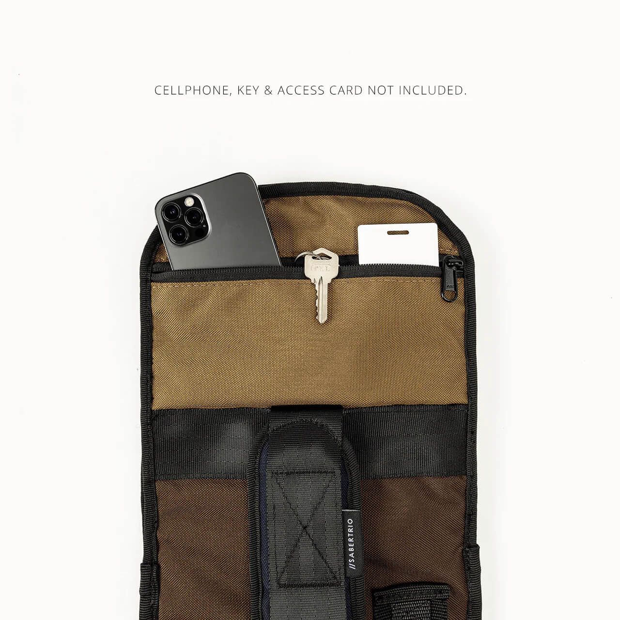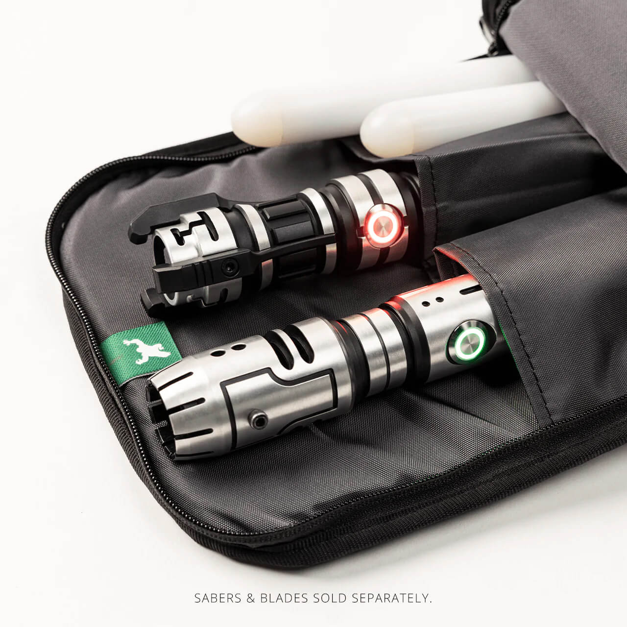 Bag in the colors of a Jedi Order exile working as a Rigger (maintenance technician) on the planet Bracca. It's specially designed to carry your personalized sabers safely, conveniently and, above all, in style. It can easily be carried by hand with the hilt side strap, or slung over the shoulder with the adjustable strap. It also features a small external compartment.