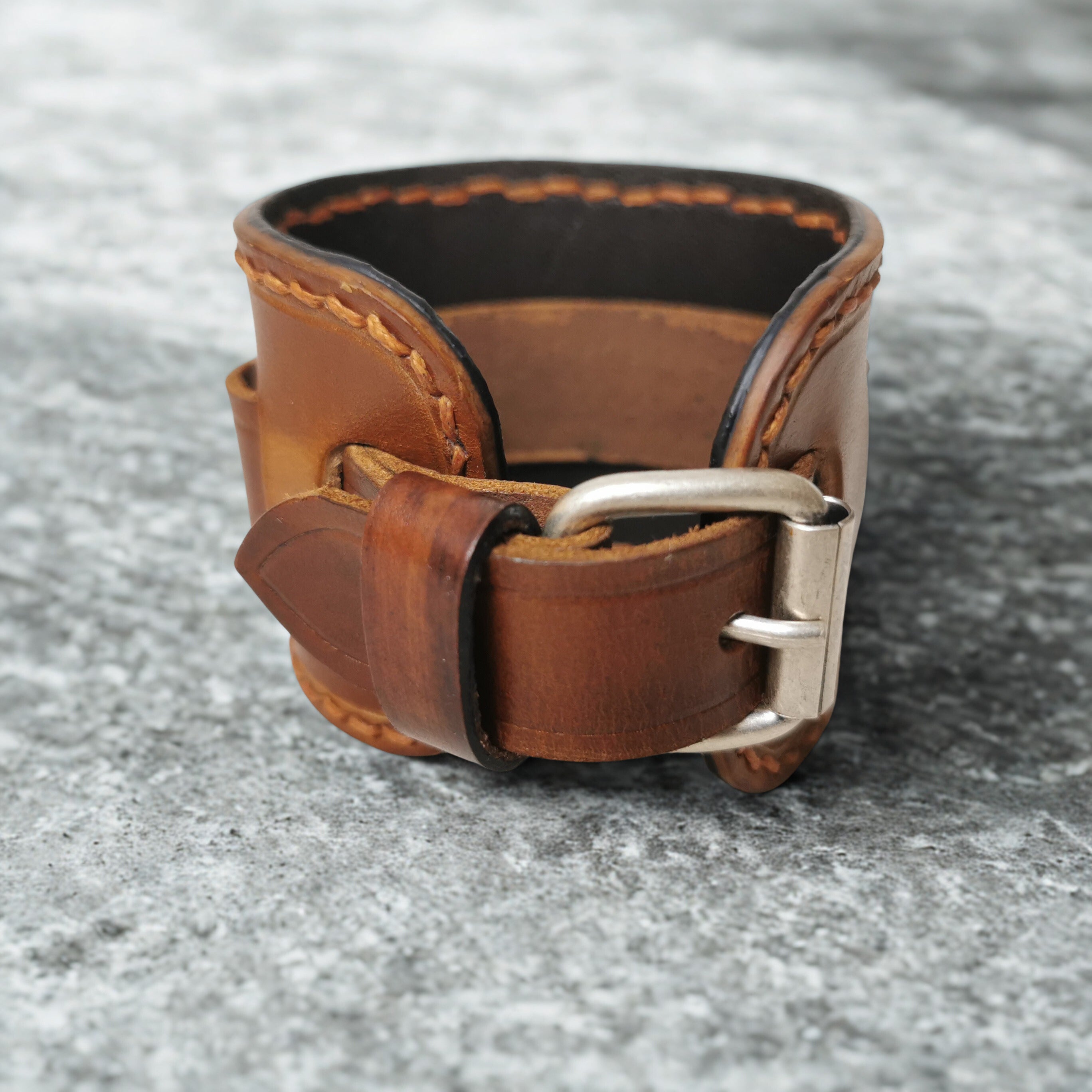 Depuis septembre 2025, les bracelets sont maintenant doublés pour un meilleur confort. Les bords ont été retravaillés avec une surpiqure qui vient rehausser les contrastes. Le patinage du cuir a été amélioré donnant plus d'authenticité aux bracelets.